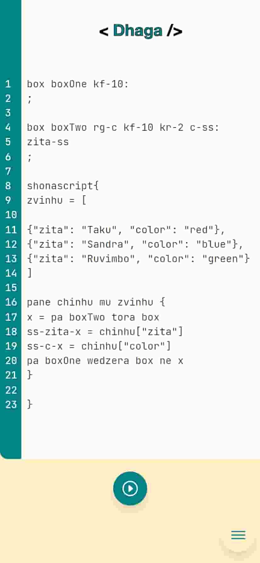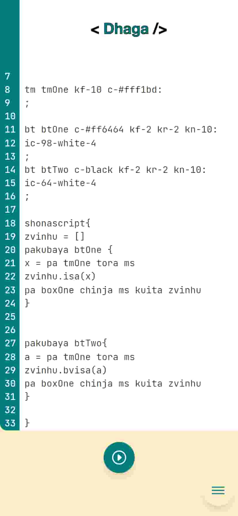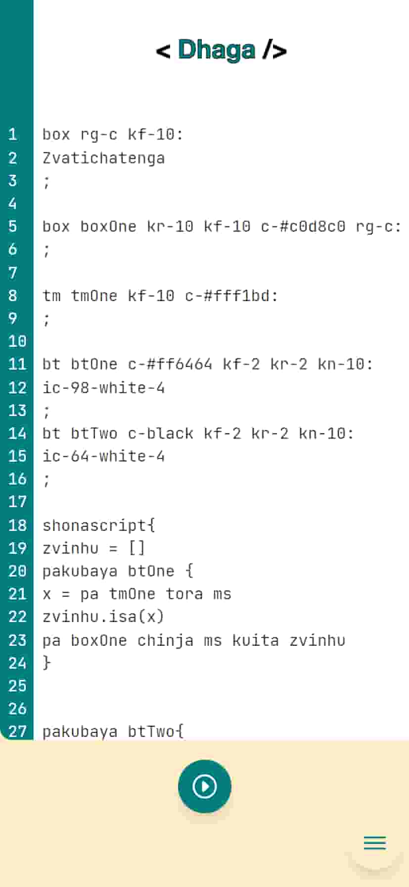 Ukaona uchinyora code ye Dhaga pasina ShonaScript, unobva waziva kuti ukugadzira website. Ukazotanga kunyora ShonaScript mu Dhaga, unobva waziva kuti ukugadzira web application