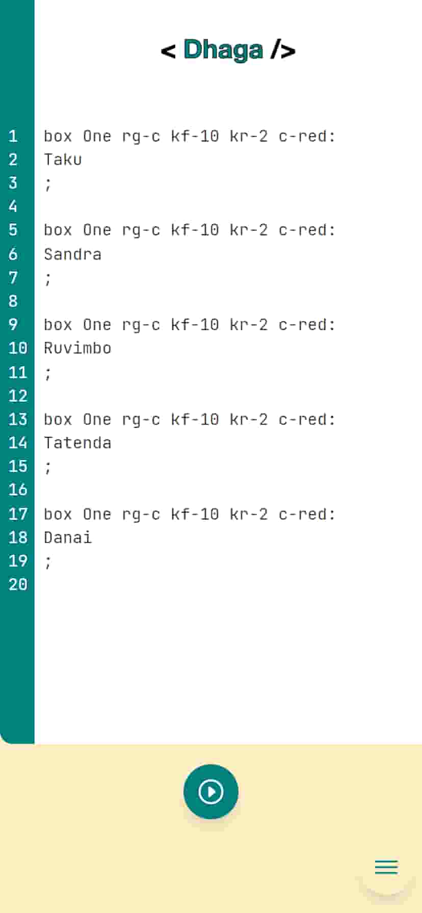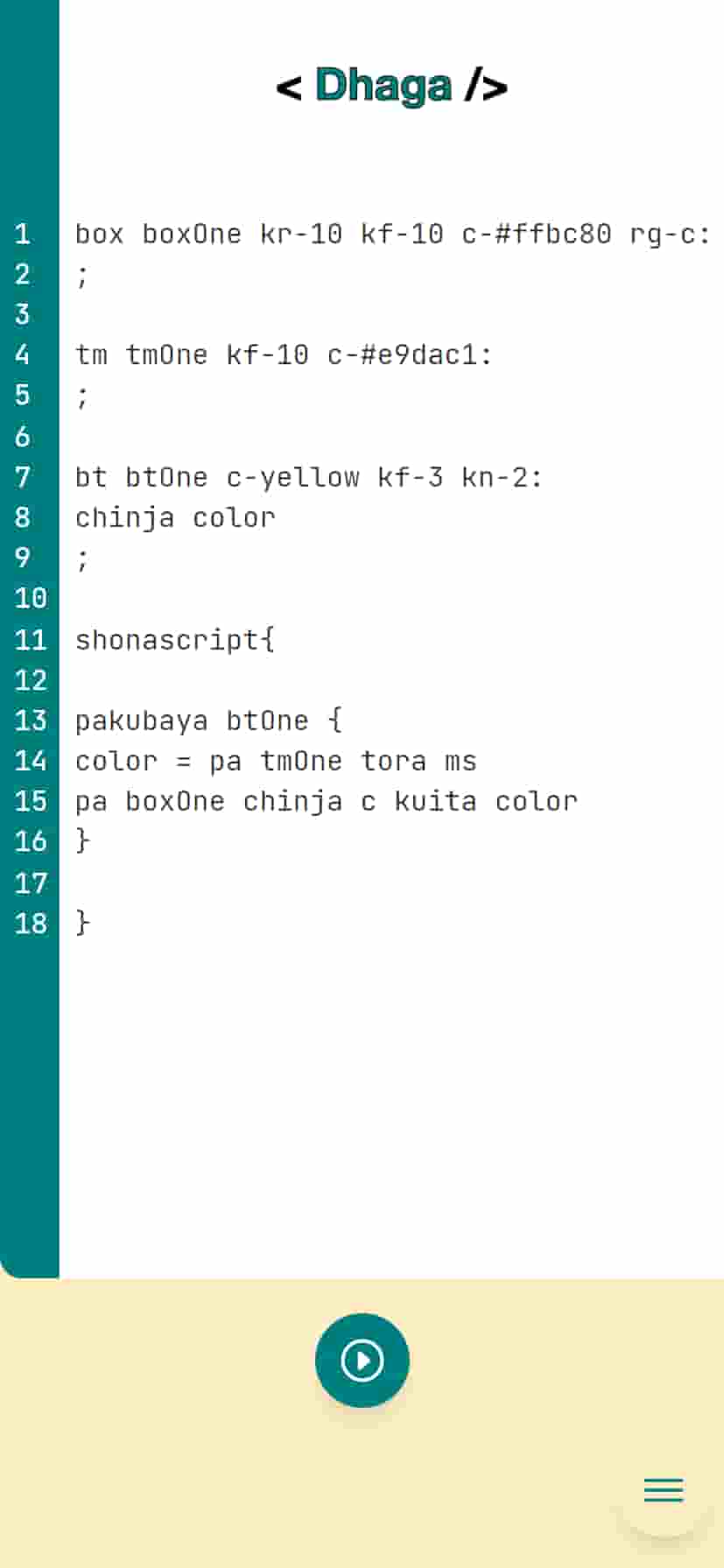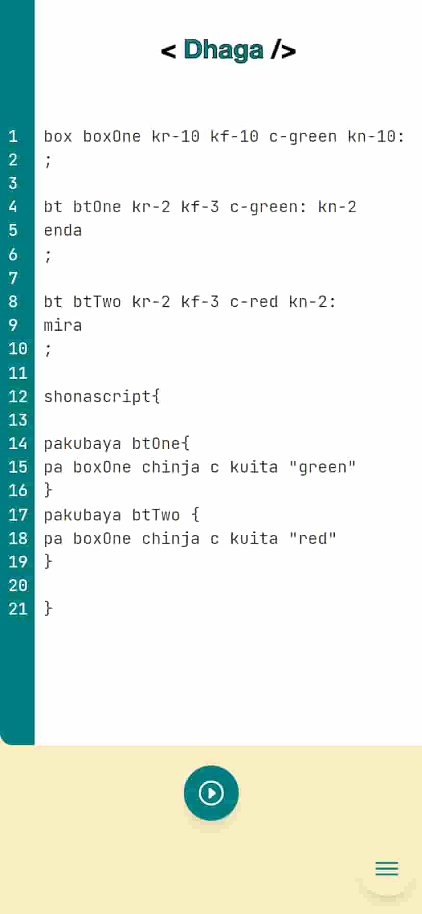 Ukaona uchinyora code ye Dhaga pasina ShonaScript, unobva waziva kuti ukugadzira website. Ukazotanga kunyora ShonaScript mu Dhaga, unobva waziva kuti ukugadzira web application