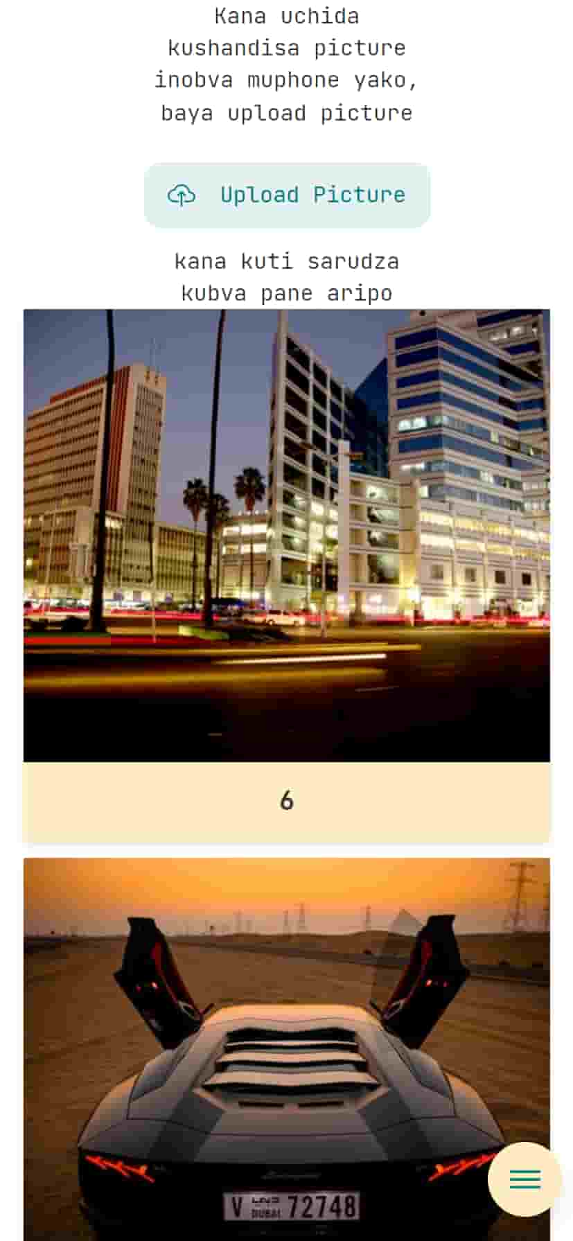 Unoona kuti une 6 ma picture ane ma number kubva ku 1 kusvika ku 6. Unogonawo kuisawo ma picture ako kana ukabaya bhatani rakanzi upload picture. Kana waisa picture rinobva mu phone, uchaona kuti picture iroro richapihwa nhamba 7, ma nhamba iwayo ndiwo aunoshandisa kuisa picture pa boxuchishandisa pic- seizvi: