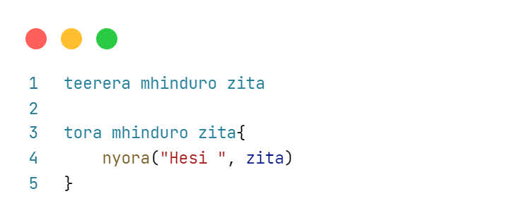 Unogona kuda kunyora code inoita kuti munhu apindure mu terminal, sokuti unogona kuda kuti munhu anyore zita rake mu terminal, iwewe wozotora zita iroro oita zvaunoda naro zvakaita seku mhoresa munhu iyeye. Tarisa pazasi apa, uone kuti izvi zvinotwa sei: