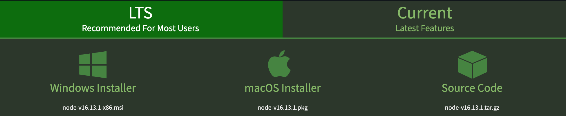 - Enda ku https://nodejs.org/en/download/, wo downloader Node JS inoenderana ne